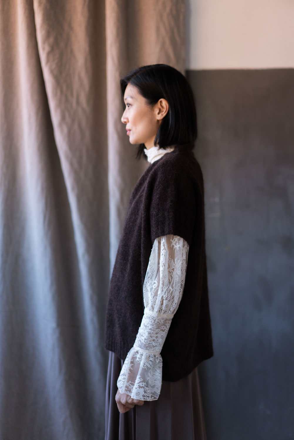 Gilet con scollo a V e spalle leggermente estese, un capo versatile, pensato per essere interpretato in mille modi diversi, perfetto sia da solo che abbinato a camicie, top o abiti.