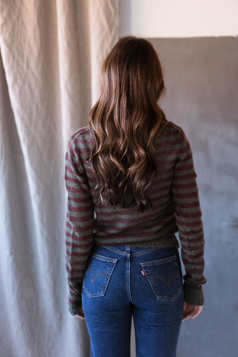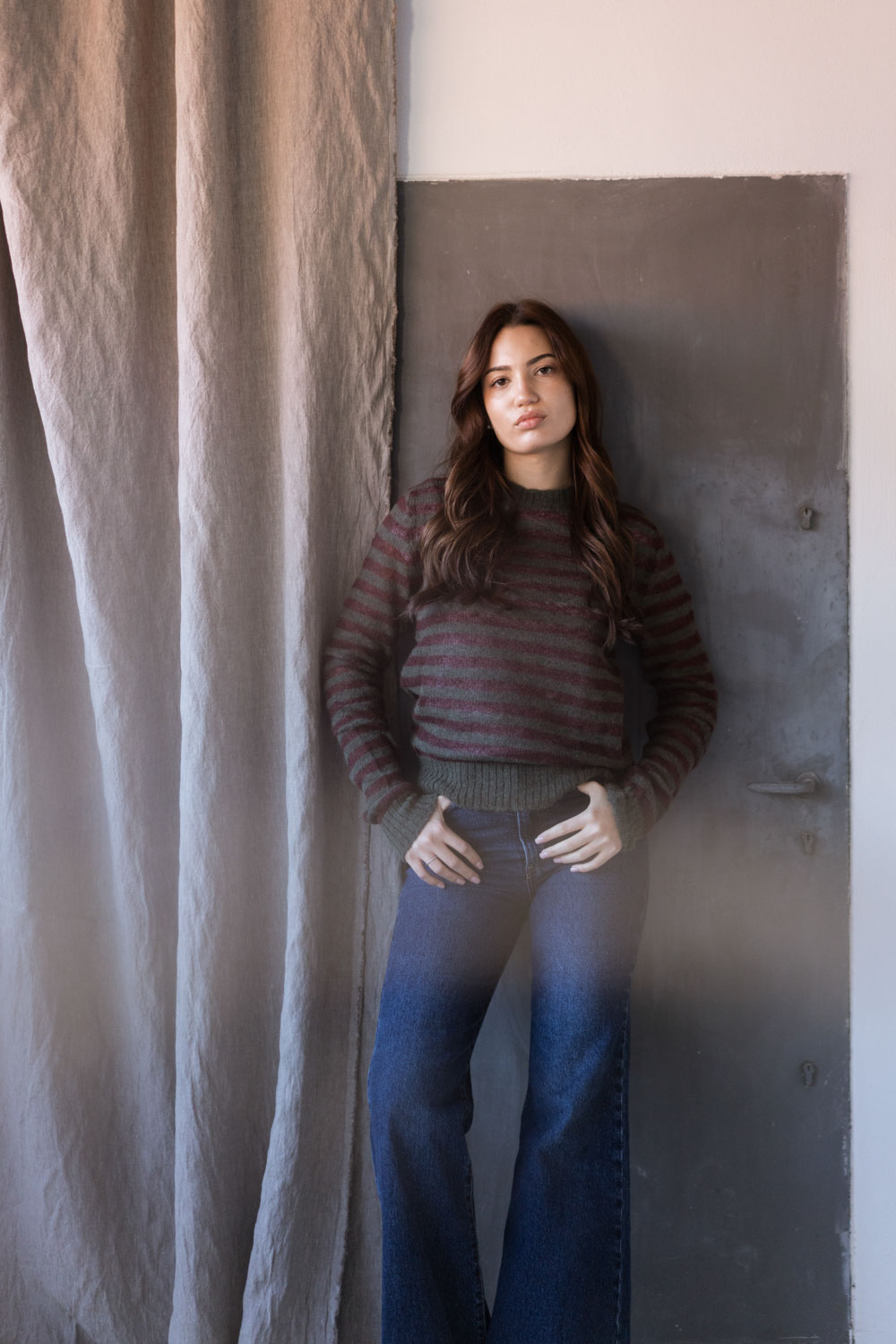 Maglia girocollo a righe, leggera e morbida, definita da delicati elastici ai polsi e alla vita che ne valorizzano la caduta naturale. Un modello essenziale ma d’impatto, capace di aggiungere carattere a ogni look mantenendo un’eleganza sobria e senza tempo.