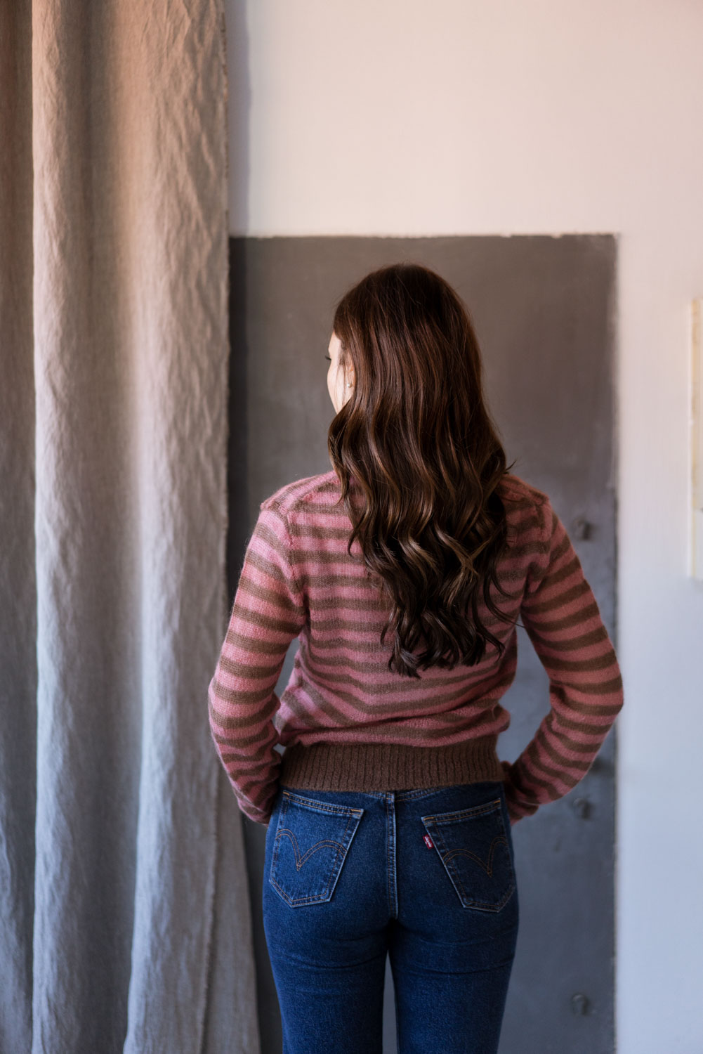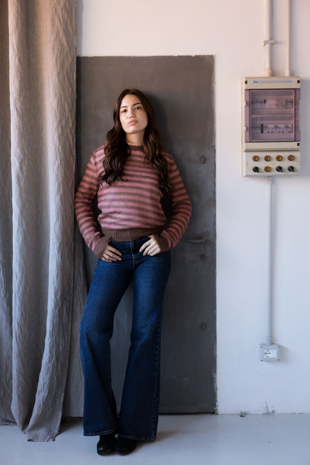Maglia girocollo a righe, leggera e morbida, definita da delicati elastici ai polsi e alla vita che ne valorizzano la caduta naturale. Un modello essenziale ma d’impatto, capace di aggiungere carattere a ogni look mantenendo un’eleganza sobria e senza tempo.