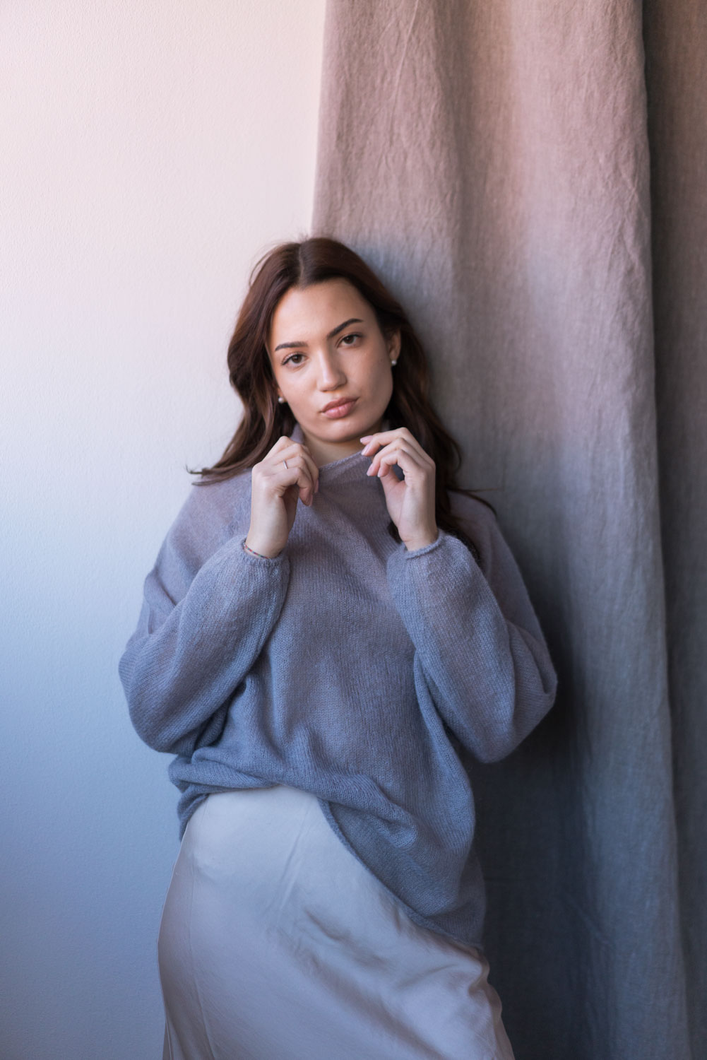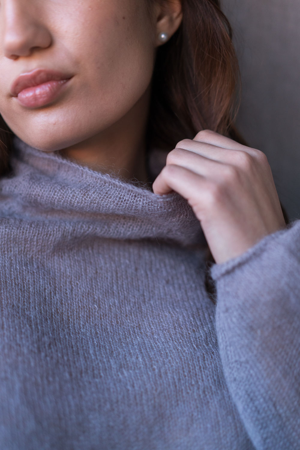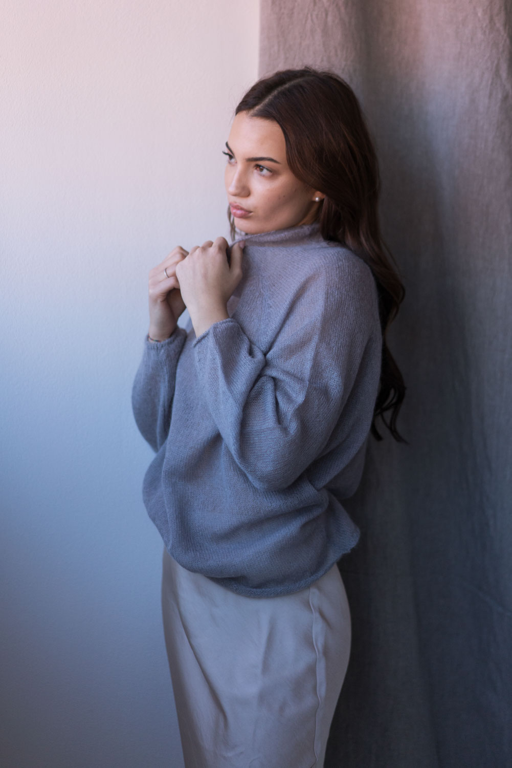 Maglione con collo a cratere, maniche a sbuffo e morbidi elastici ai polsi, offre una vestibilità ampia e leggera.